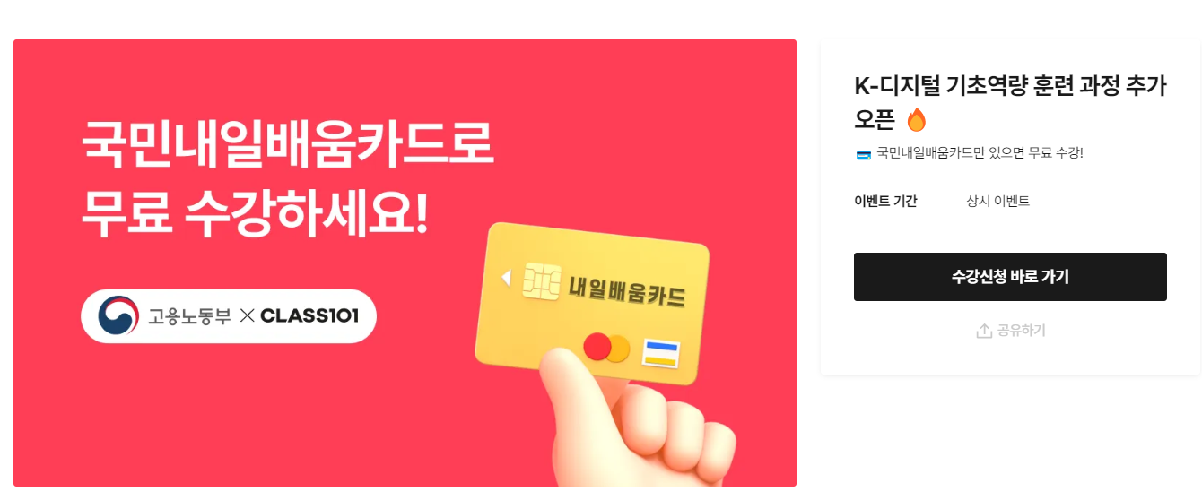 그러던 중 클래스101에서도 국민내일배움카드를 사용할 수 있다는 페이지를 보았다.