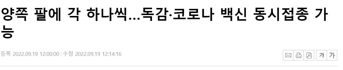 기사에서 보는 것 처럼 독감과 코로나 백신을 동시에 접종도 가능하다고 합니다.