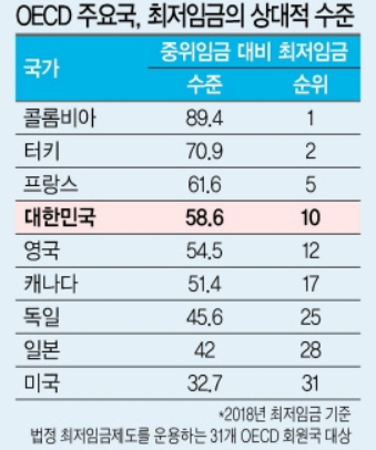 대한민국의 최저임금 수준은 다른 나라들에 비해서 높은편이라고 합니다.